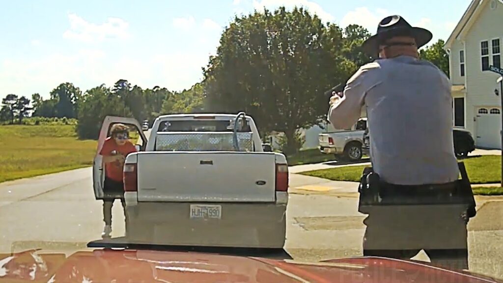 Cook can be seen retreating to his patrol car as Diaz points the gun at him out of the passenger side window before exiting the truck with the gun.