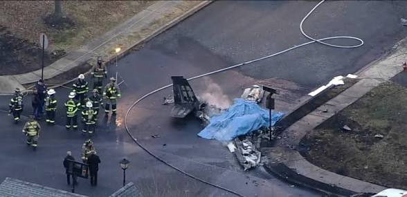 The plane crashed just yards from a home. No injuries were reported on the ground and no homes were involved in the crash, but the plane struck an unoccupied vehicle, Bucks County spokesman James O’Malley said. There was also some damage from debris to nearby homes, said Hilltown police Chief Chris Engelhart.