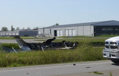 Pilot, plane passenger, truck driver taken to Langley Memorial Hospital