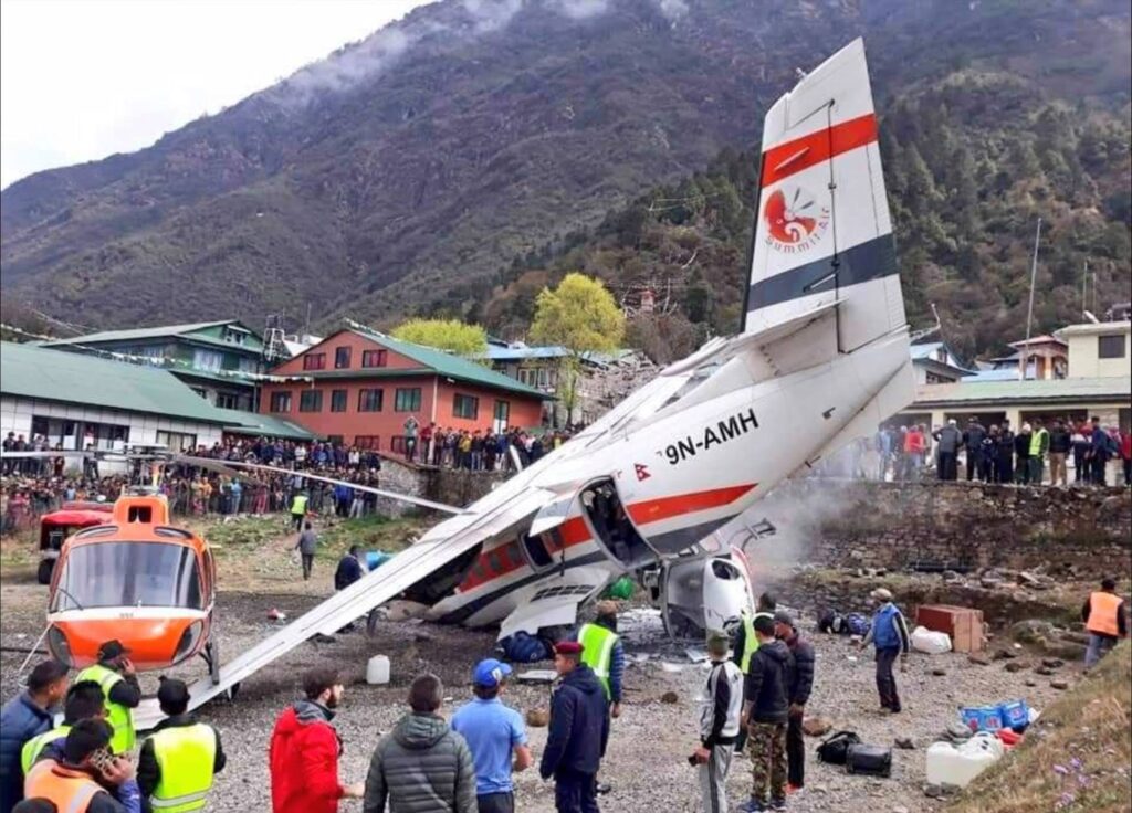 The plane, operated by Summit Air, was not carrying passengers as it was trying to leave what was considered to be one of the world’s most dangerous airports due to the shortness of its runway and its location surrounded by mountains.