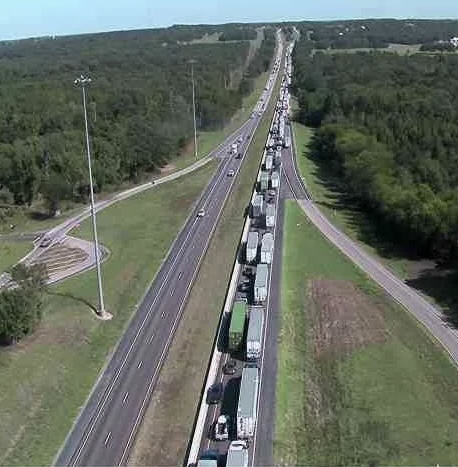 The eastbound lanes of Interstate 20 before FM 849 are backed up following a multi-vehicle crash.(Texas Department of Transportation)