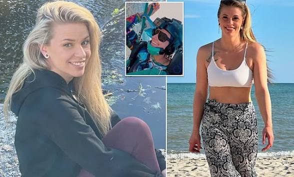 Devrey LaRiccia Chase, 28, of California, was skydiving with a student on August 2 when she hit the freak weather event around 40 feet above ground and it sent her into an ‘uncontrolled spin,’ her husband Freddy Chase said in an Instagram Story.