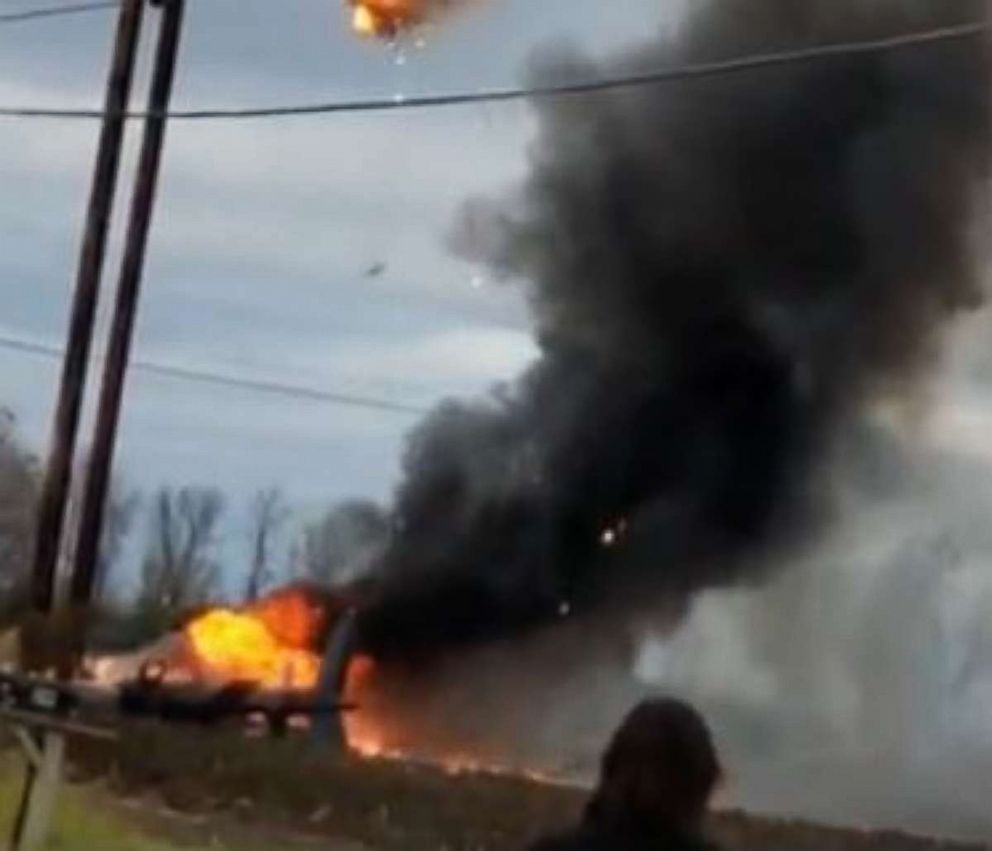 Video showed the helicopter engulfed in flames and falling from power lines.