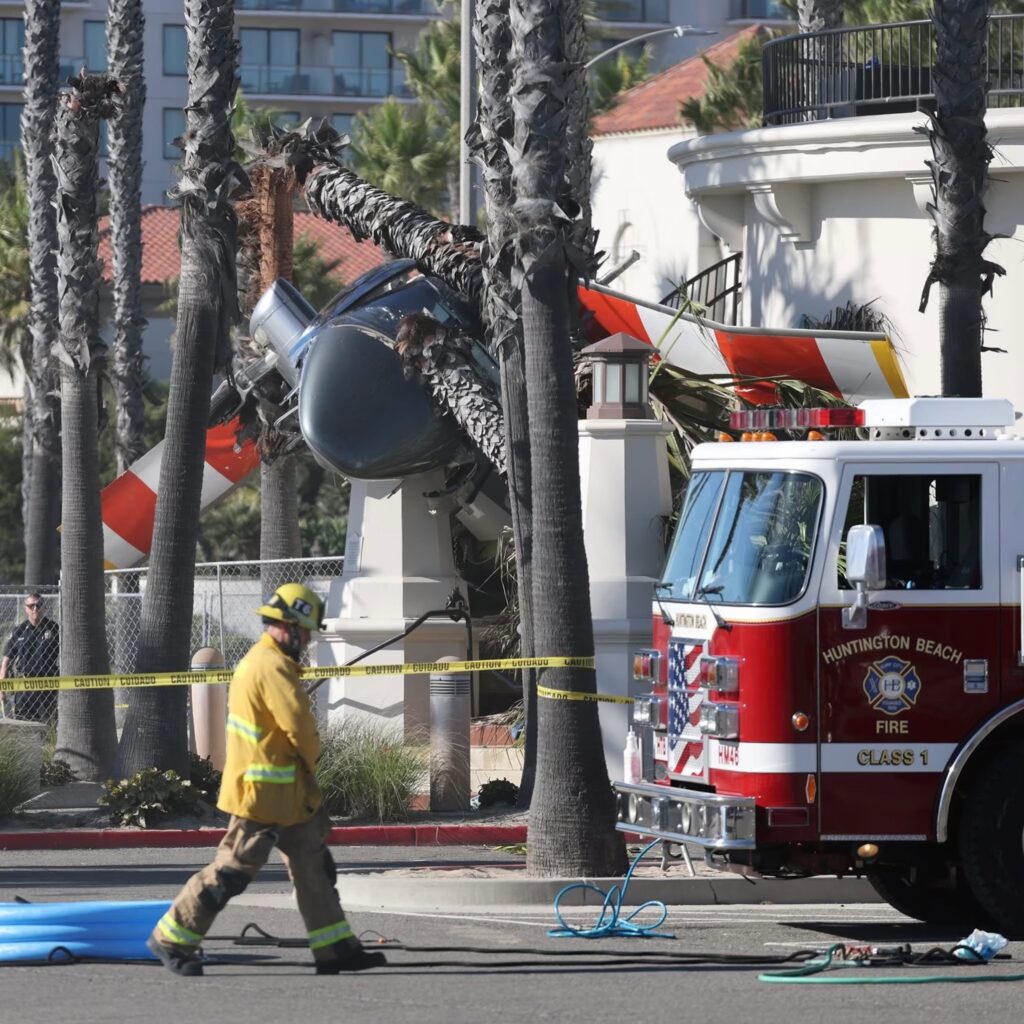 Two people were pulled from the helicopter wreckage and three others on the ground were hurt, a city of Huntington Beach spokesperson said in a statement.
