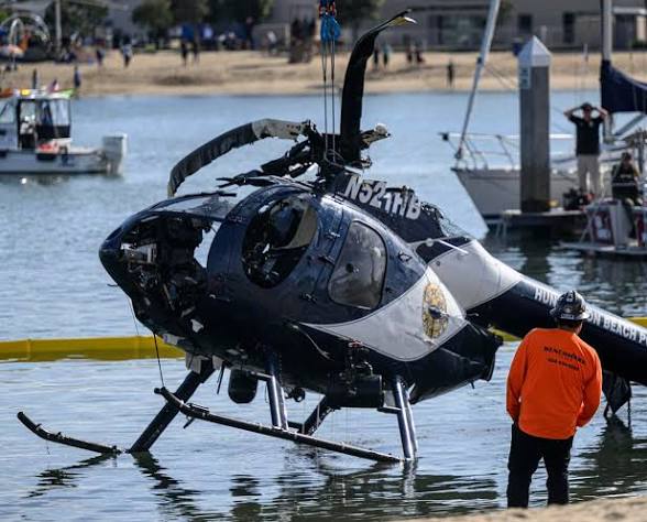 The helicopter crashed at about 6:30 p.m. local time, as two officers from the Huntington Beach Police Department were responding to nearby Newport Beach, the department said.