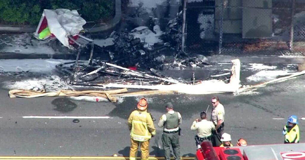 Fire: Storm’s plane crashed shortly after take off from Hawthorne Municipal Airport in Los Angeles on Monday