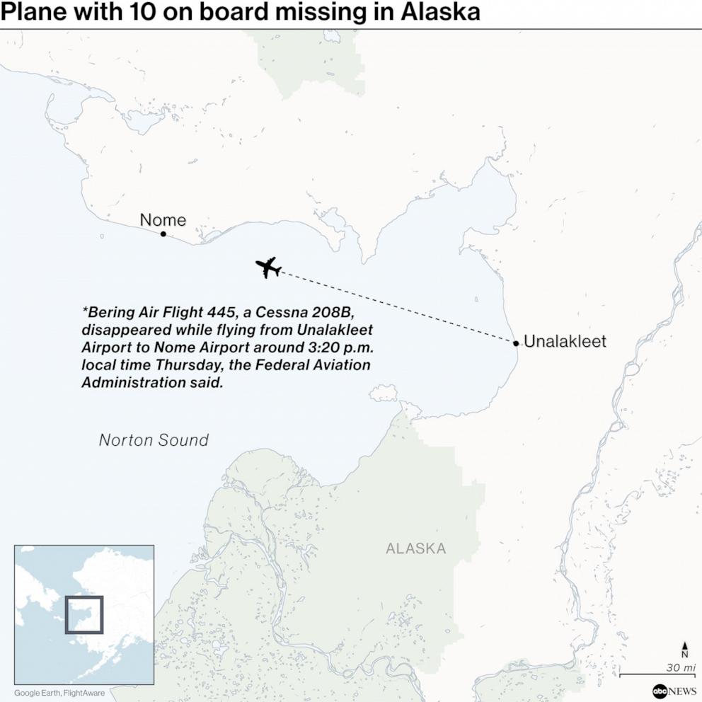 The Bering Air flight had disappeared while flying from Unalakleet Airport to Nome Airport around 3:20 p.m. local time Thursday, the Federal Aviation Administration said.