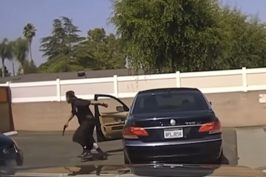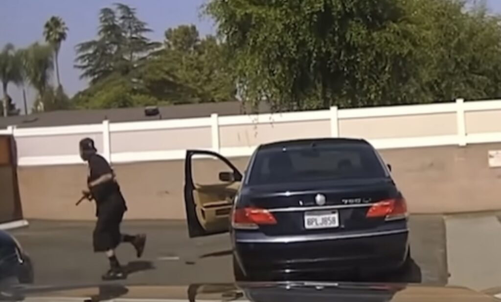 RIVERSIDE, Calif. — Newly released dash camera footage shows a documented gang member and suspected carjacker armed with a handgun attempting to flee from officers into a neighborhood before an officer-involved shooting occurred,