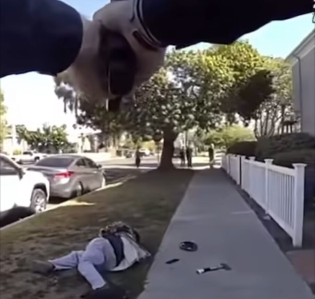 At the scene of the shooting, sheriff’s homicide detectives recovered a weapon resembling an axe.