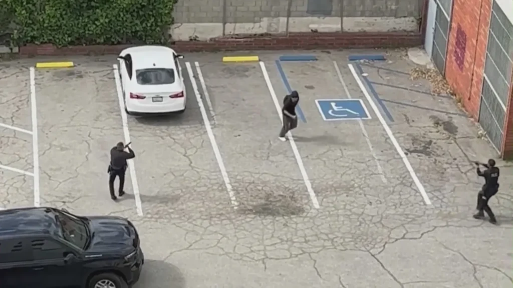 According to Ruiz, officers arrived at the scene and chased the suspect to a small parking lot on Vermont Avenue.