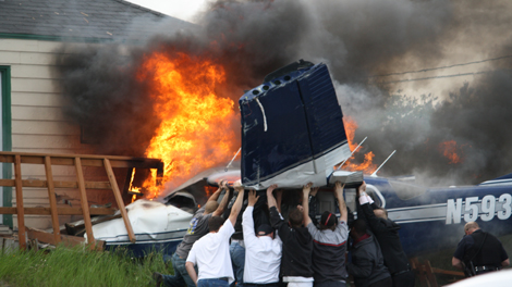 I can’t say I’ve ever helped people out of a burning plane, he said.