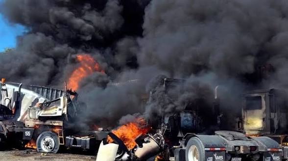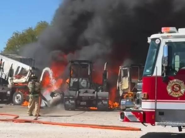 At least 10 tractor-trailers were damaged from the crash, which also sparked grass fires, Fort Worth FD said.