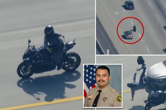 The motorcycle rider accused of killing a sheriff’s deputy before leading officers on a high-speed chase that ended in a gnarly caught-on-video wreck in Southern California has been identified.