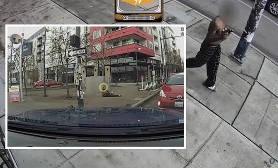 In a matter of seconds, the man falls to the ground, but not before sitting back up and aiming the gun at police again. An officer then shoots the man again, and he falls back to the ground for the last time.