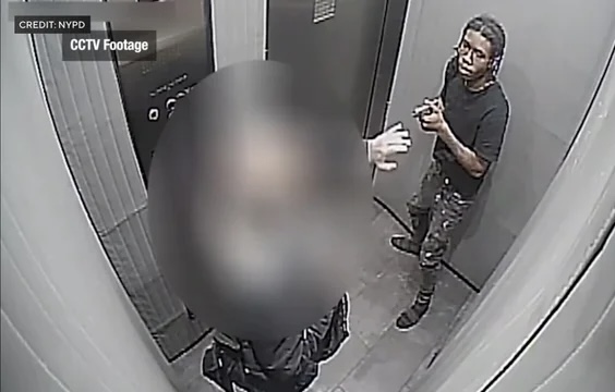 About 20 minutes before the shooting, new surveillance video shows the suspect pull a gun on a man in the elevator of an apartment building about 10 blocks north. He gets out of the elevator on the first floor. The other man was unharmed, police said.