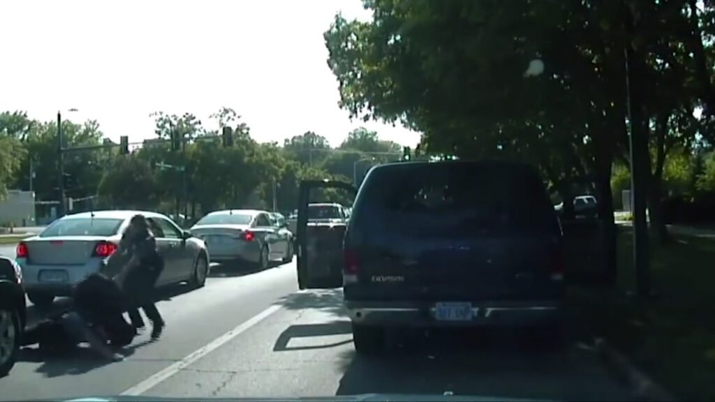 She is seen shooting Lewis when he punches and tackles the officer who initiated the traffic stop. Blood, who resigned from the police force in January after being placed on paid leave, is charged with aggravated battery. Lewis was treated at a hospital and is charged with several misdemeanors, including battery against a law enforcement officer.