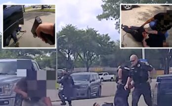 Shocking video footage has been released by police of the moment a traffic stop in Texas unexpectedly turned into a three-man gunfight between two police officers and a suspect. One …