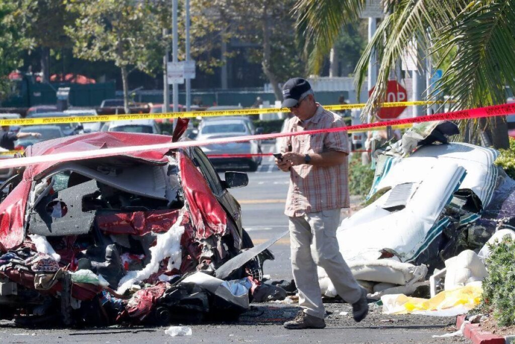 “Nobody on the ground was injured, so I don’t know anything about what this pilot did or what he was thinking, but it could have been much more tragic. This is a Sunday afternoon, and we have people shopping, so the fact that there are no injuries on the ground is a miracle in itself,” said Capt. Tony Bommarito, a spokesman for the Orange County Fire Authority.
