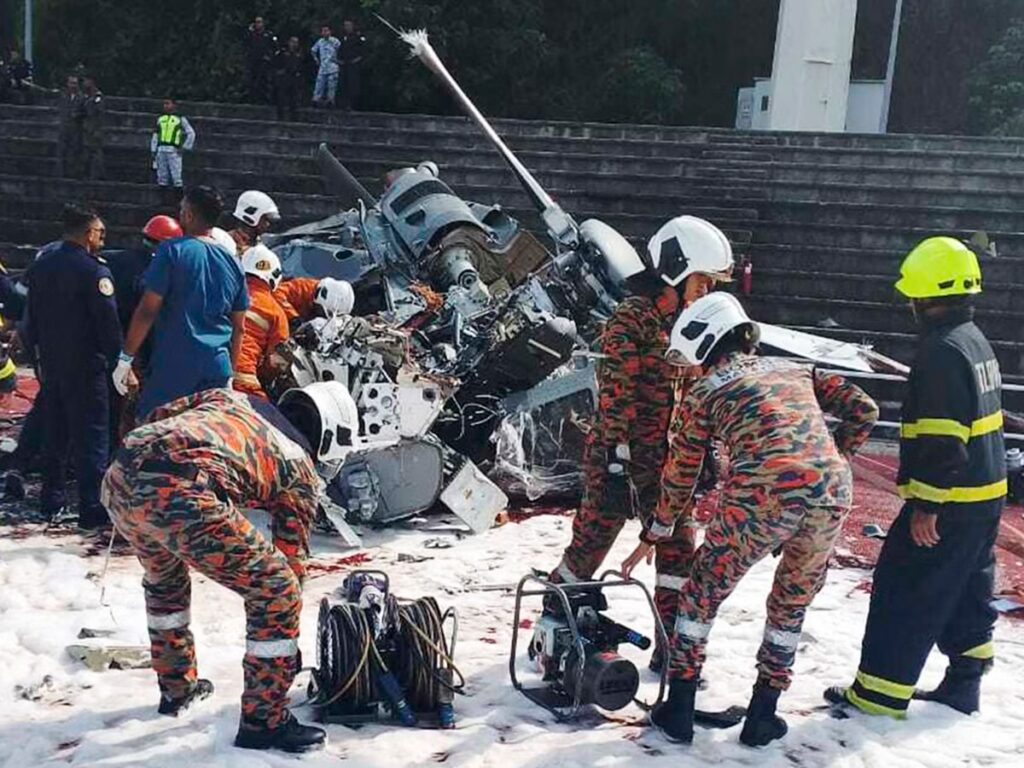 “The two helicopters collided during flight training,” said Mr Suhaimy Mohamad Suhail, senior operations commander from the fire and rescue department, adding that all 10 crew members on board were confirmed dead by medical officers.