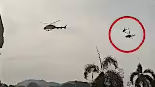 One chopper was seen clipping the rear rotor of another, causing both to go into a tailspin and crash.