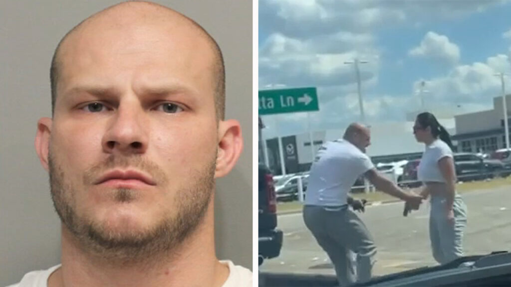 Video of the encounter shows one man slamming his hands onto a silver Toyota Camry as a woman fired a gun into the car’s window while a man and child were inside.