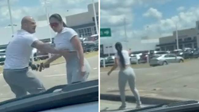 2 arrested in road rage shooting involving childVideo of the encounter shows one man slamming his hands onto a silver Toyota Camry as a woman fired a gun into the car’s window while a man and child were inside.Harris County Sheriff’s Dept./Twitter