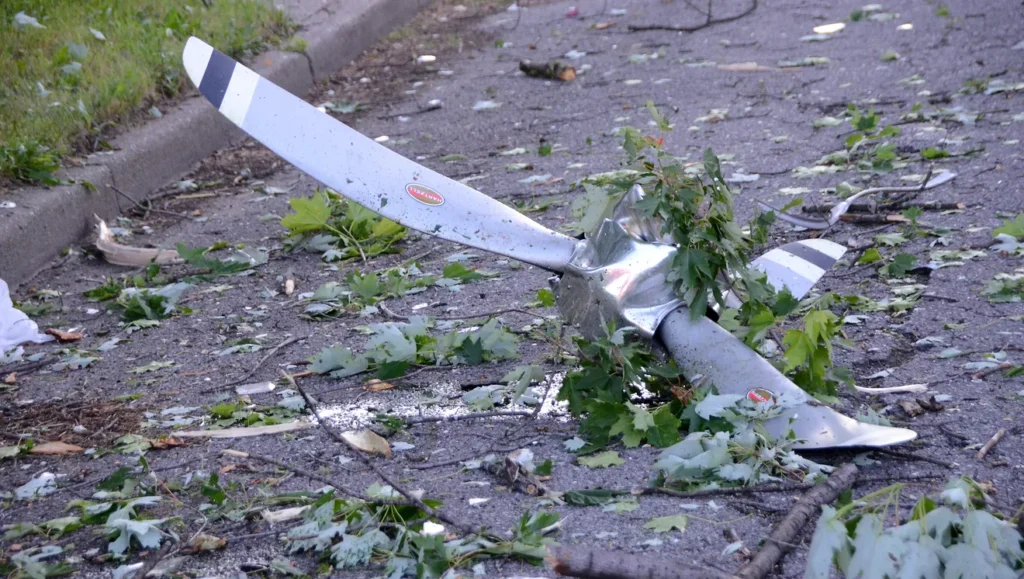 It appeared the plane hit a tree, and a propeller was in the street on Milton, just west of Van Dyke and near Forest Lawn Cemetery on the city’s east side, according to photographer Bill Eisner. The plane landed upside down.