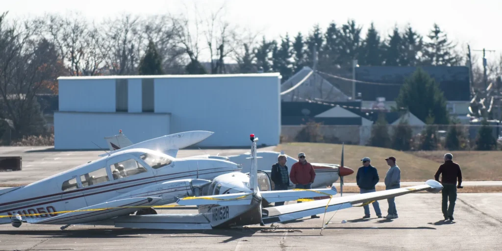 At least two people were hurt after a small plane crashed into another aircraft at Doylestown Airport in Bucks County, Pennsylvania.
