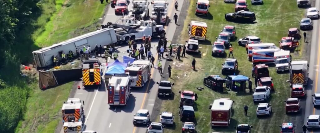 The bus was traveling eastbound when the “vehicle lost control, went into the median, over-corrected, and ended up in the ditch,” New York State Police Trooper James O’Callaghan said during a press briefing.