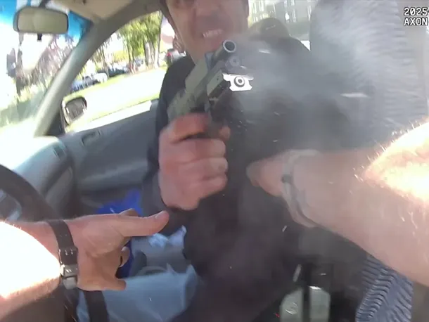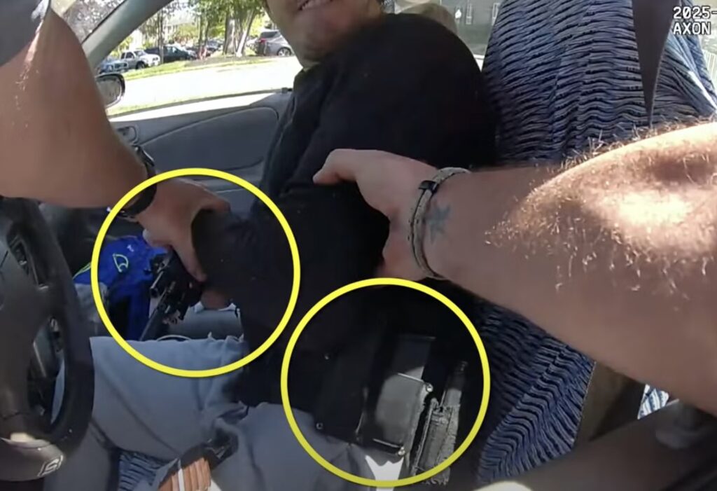 Becoming more aggressive, the 36-year-old tells the cop he has no vehicle registration. He then refused to provide his identification or share his name – and then tried to reach for his weapon, prompting the officer to call in backup.