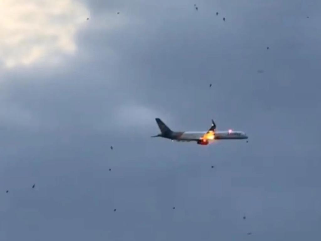 Unverified videos circulating on social media appeared to show the aircraft’s right engine flash flames at intervals.