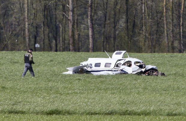 The plane crashed just before 11 a.m. Friday near an airport about 2 miles north of Harrisburg, Oregon, which is just north of Eugene, according to Linn County sheriff’s officials.