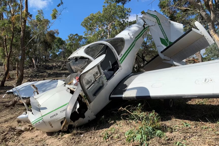 The plane landed on a ridge among bushland beside Currandooley Road, near Lake George, and appeared to have come down just short of an airfield.