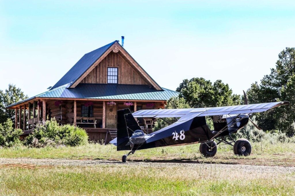 Because of winter conditions, the road to the cabin was closed, requiring Jared and Karen to fly in and out of their property, which has its own runway.
