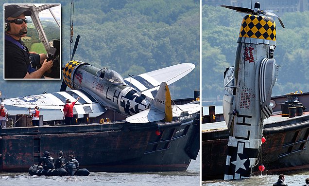 William Gordon, 56, was killed after his aircraft, the WWII vintage P-47 Thunderbolt plane he is pictured with here, crashed into the Hudson River on Friday