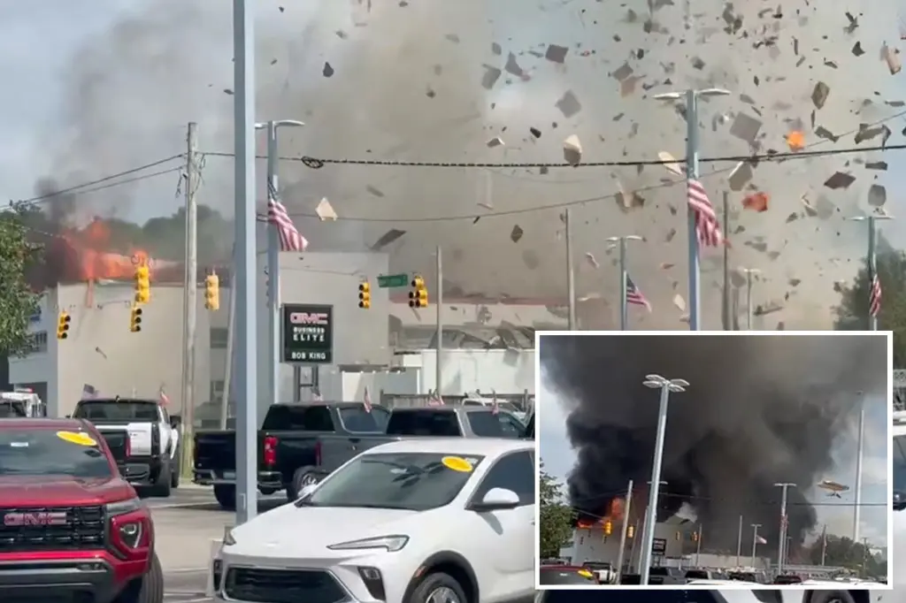 Officials said the driver, who has been identified as Jason Lee Beach, 46, of Wilmington, was turning into a car dealership when his vehicle struck the gas lines feeding the building.