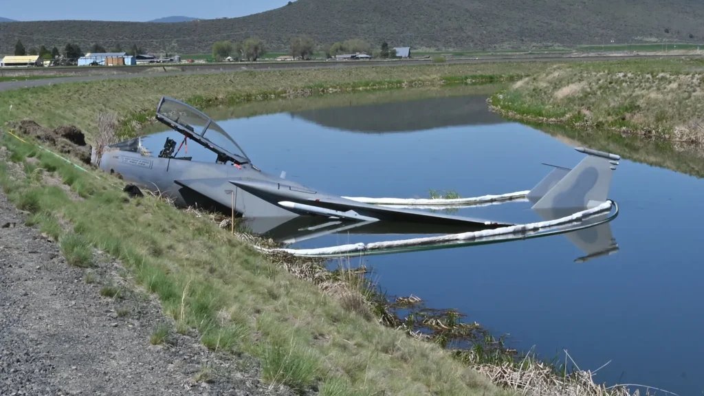 An experienced F-15 pilot made two split-second errors during an emergency landing – including saying a vital emergency word just once over the radio rather than repeating it three times – that sent the plane crashing into an Oregon drainage ditch in May 2023, an Air Force investigation found. The crash occurred even though in the minutes before the fighter slid off the end of the runway at Kingsley Field near Klamath Falls, Oregon, the pilot had done an admirable job of getting the plane safely down onto the base’s runway after a massive mid-flight hydraulics failure, an Accident Investigation Board report released this week found.