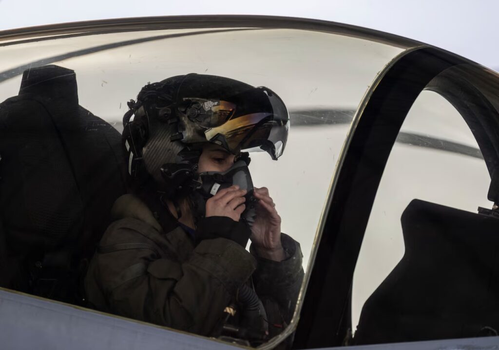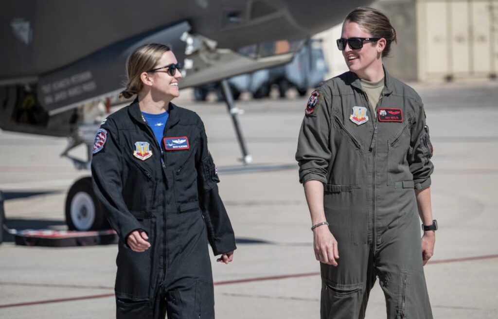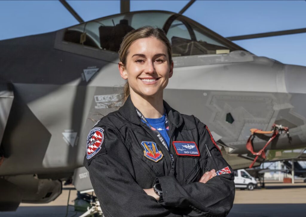 U.S. Air Force Capt. Melanie “MACH” Kluesner, an F-35A Lightning II pilot assigned to the 421st Fighter Squadron, became the new certified pilot and commander of the F-35A Lightning II Demonstration Team during the Air Combat Command Heritage Flight Training Course at Davis-Monthan Air Force Base, Ariz., Mar 1, 2024.