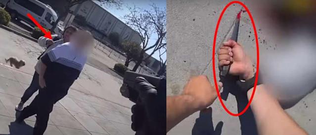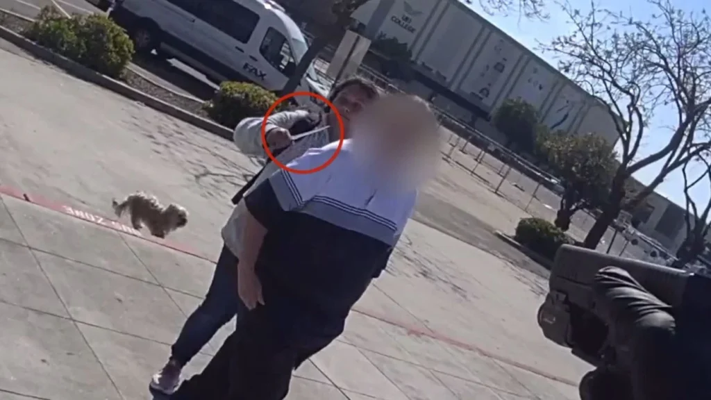 Fresno police shot a female suspect in the head on Thursday, April 10, 2025, after she took a woman hostage with a knife near Manchester Center. The suspect remains in critical condition while the hostage was unharmed. (Fresno PD)