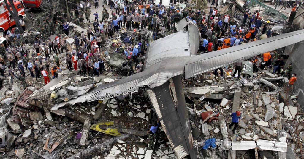 The military’s chief spokesman, Major General Fuad Basya, confirmed that there were no survivors among the crew and passengers, 20 people had been killed on the street, and that the cause of the crash remained unknown