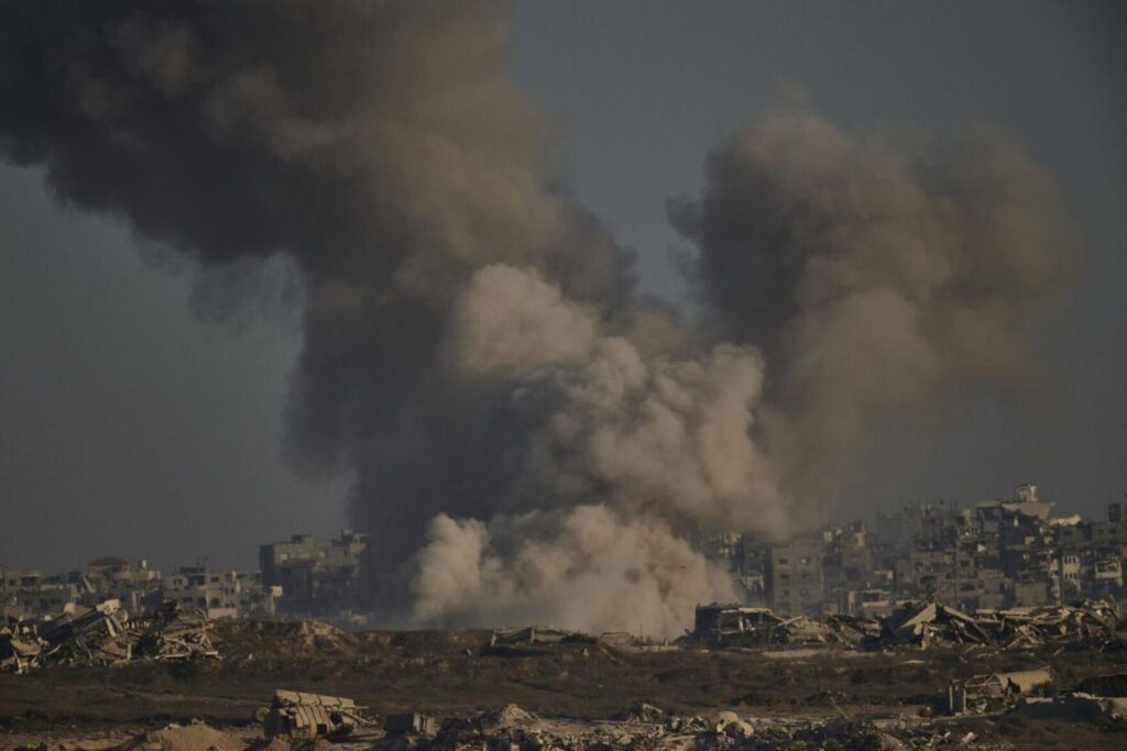 AP video footage showed several large explosions across Gaza overnight. Israel’s military Saturday evening said it had struck a key Hamas member in the area of Gaza City, with no details.
