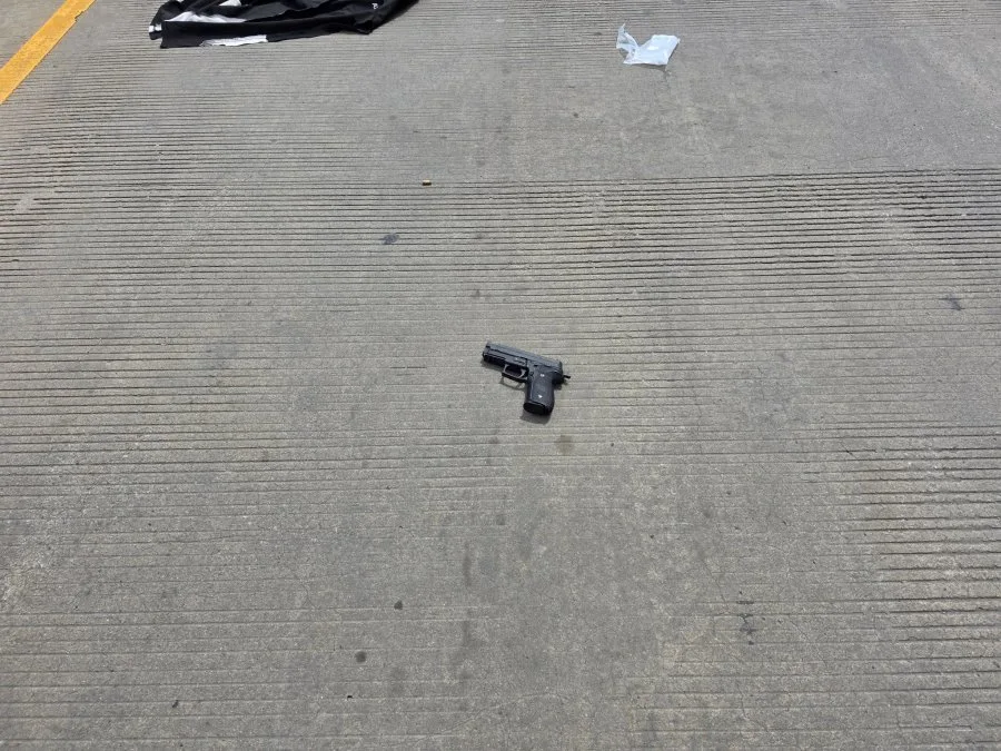Officials said the suspect, who was armed with a semi-automatic pistol, was taken to a local hospital with critical injuries and was later pronounced dead.
