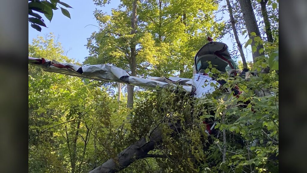 Ottawa Fire Services spokesperson Nick DeFazio said Thursday night that the plane had struck hydro wires as it went down and came to rest in a tree. It was approximately six metres (20 feet) in the air when crews arrived.