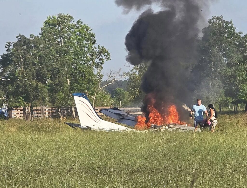 “The two people on board actually made it out safely,” said Brandi Dumas with the Fire Marshal’s Office. “They crash landed right there at the edge of what looks like a pond. They were able to carry out their luggage with their belongings,” she said.