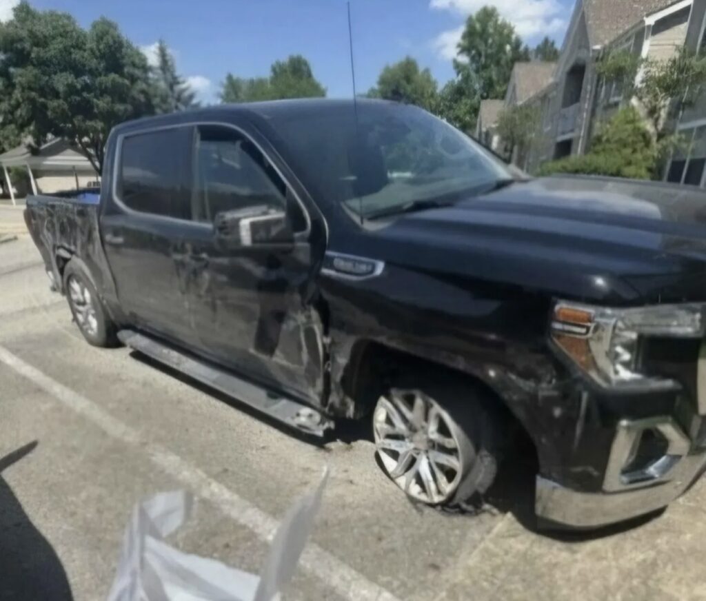 “A black GMC pickup truck that’s totally demolished came flying into our apartment complex, and they parked it and booked,” another 911 caller told dispatchers.