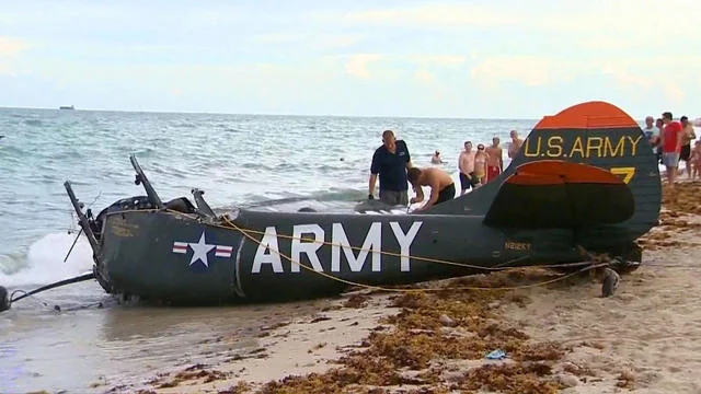 Witnesses say the former U.S. Army aircraft, now serving as a banner plane, plunged into the ocean about 100 yards from the shore with Haggerty still inside.