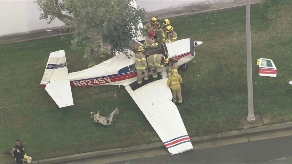 It’s unclear what caused the crash, but audio from the pilot’s call to Air Traffic Control revealed what he called “engine roughness.” It had previously taken off from Brackett Field Airport in La Verne at around 1:30 p.m. before briefly landing in Fullerton.