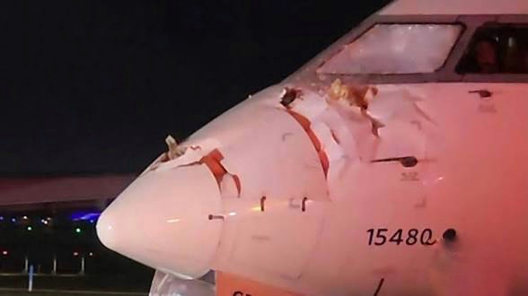 In the video, a pilot aboard Flight 5047 can be heard over the intercom telling passengers that “it seems as though there’s an aircraft that collided with us.”