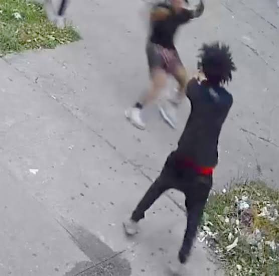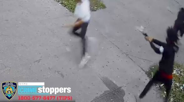 The footage, released early Wednesday, shows the suspect running down the block at the corner of Livonia and Rockaway avenues in Brownsville around 8:10 p.m. Sunday.